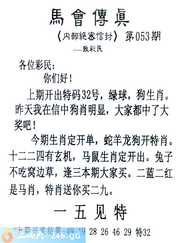 053期:首发推荐:≮馬會傳眞≯→(香港正版)