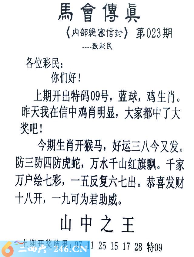 023期:首发推荐:≮馬會傳眞≯→(香港正版)