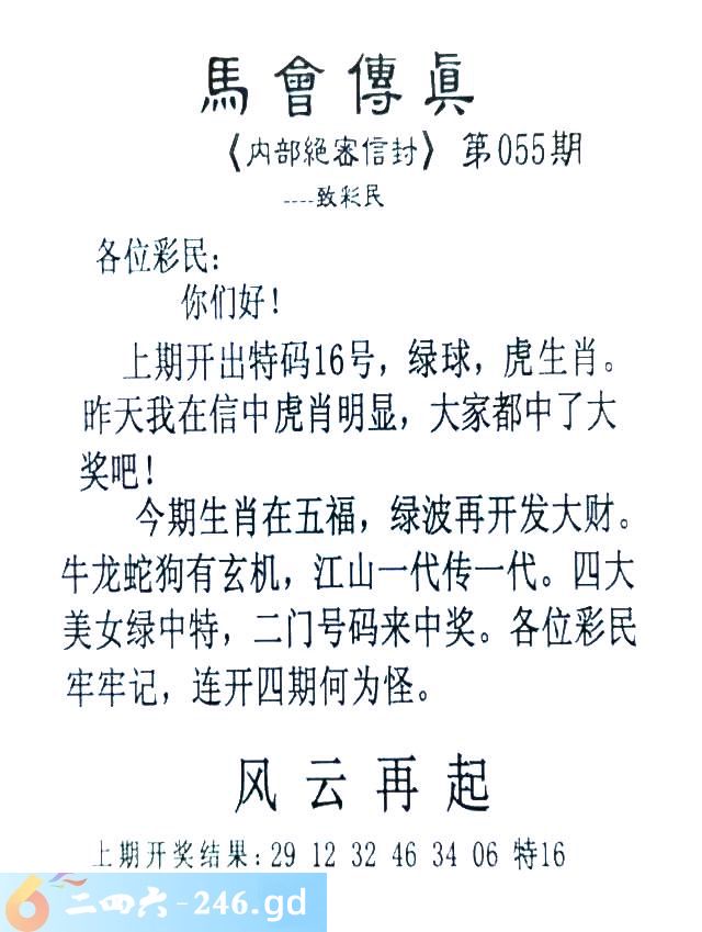 055期:首发推荐:≮馬會傳眞≯→(香港正版)