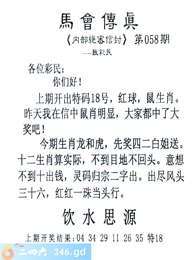 058期:首发推荐:≮馬會傳眞≯→(香港正版)