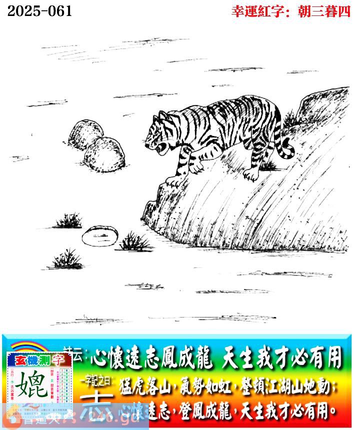 061期老版跑狗一字記之曰:【志】 詩雲:心懷遠志鳳成龍,天生我才必有用。