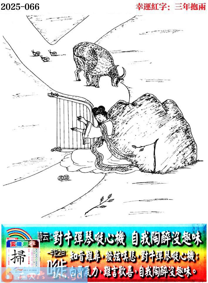 066期老版跑狗一字記之曰:【嘥】 詩雲:對牛彈琴嘥心機,自我陶醉沒趣味。