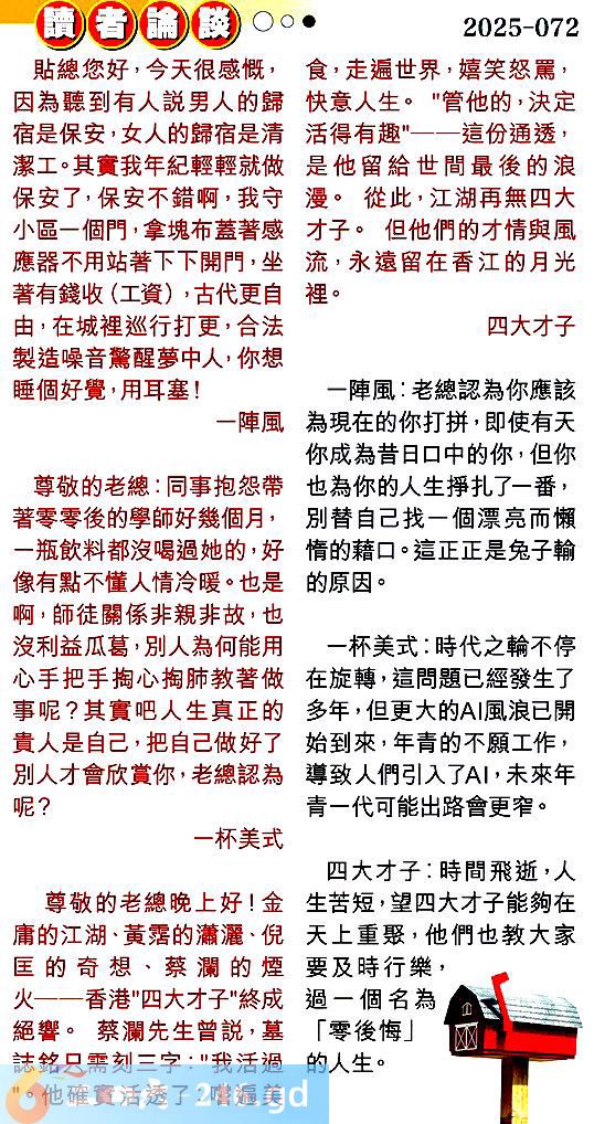 第零七二期讀者論談