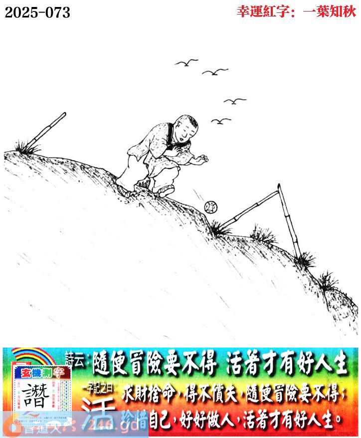 073期老版跑狗一字記之曰:【活】 詩雲:隨便冒險要不得,活著才有好人生。