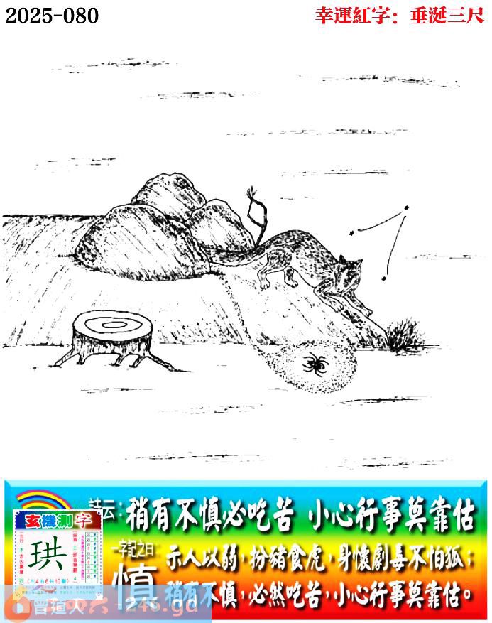 080期老版跑狗一字記之曰:【慎】 詩雲:稍有不慎必吃苦,小心行事莫靠估。