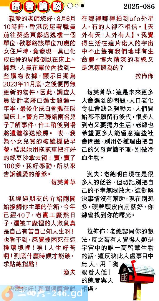 第零八六期讀者論談