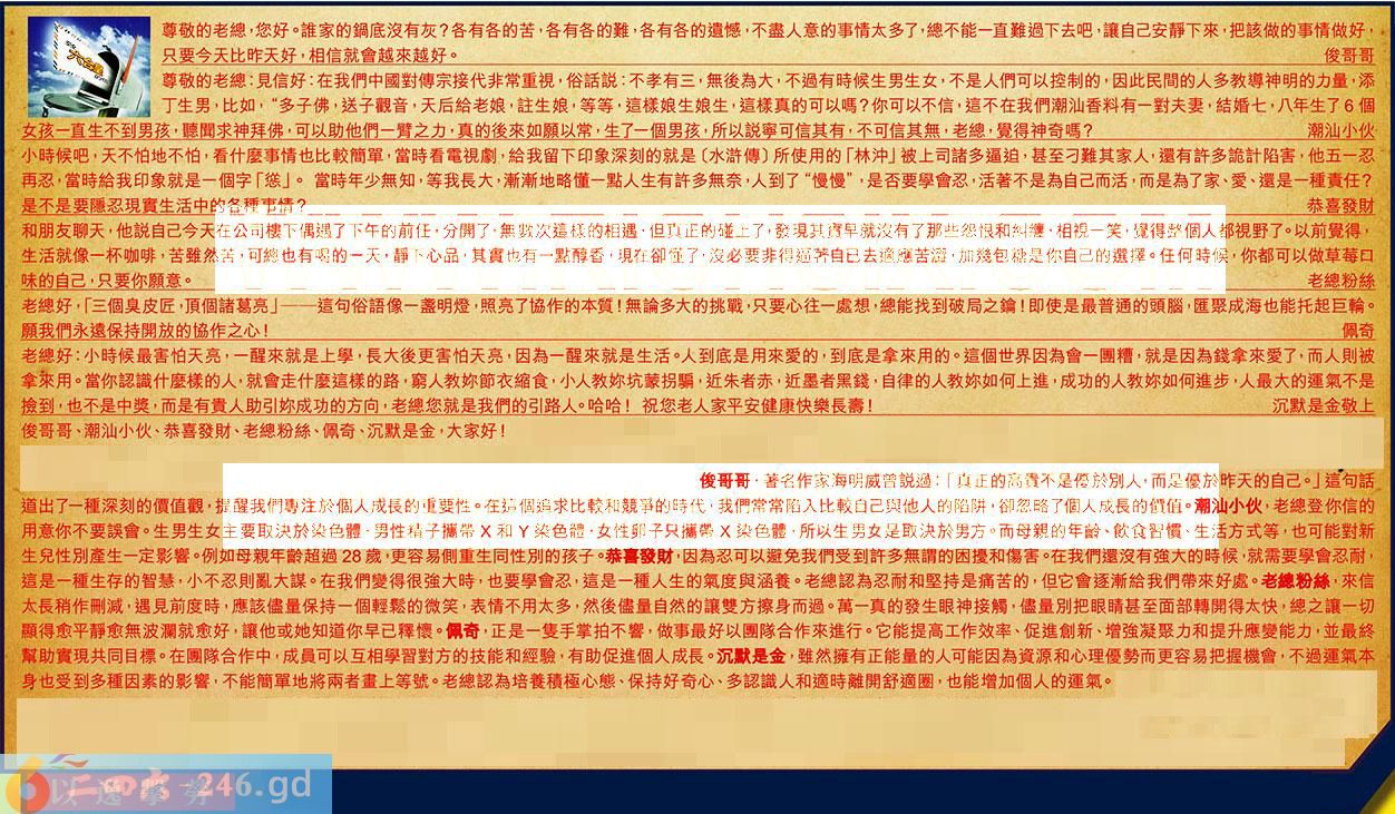 【6】.老總好:小時候最害怕天亮,一醒來就是上學,長大後更害怕天亮,因為一醒來就是生活。人到底是用來爱的,到底是拿來用的。這個世界因為會一團糟,就是因為錢拿來愛了,而人則被拿來用。當你認識什麼樣的人,就會走什麼這樣的路,窮人教弥節衣縮食,小人教你坑蒙拐騙,近朱者赤,近墨者黑錢,自律的人教你如何上進,成功的人教你如何進步,人最大的運氣不是撿到,也不是中獎,而是有贵人助引你成功的方向,老總您就是我們的引路人。哈哈!祝您老人家平安健康快樂長壽!沉默是金敬上
