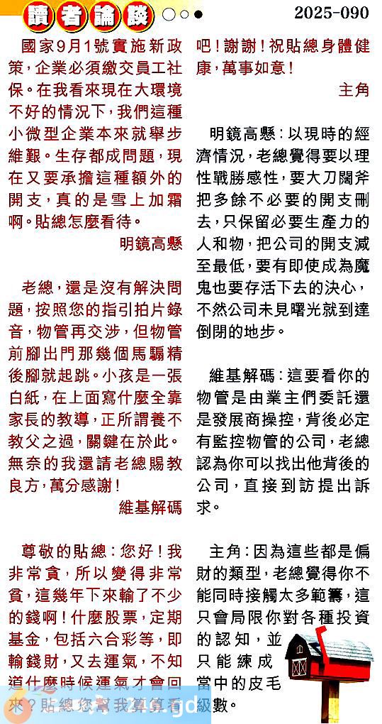 第零九零期讀者論談