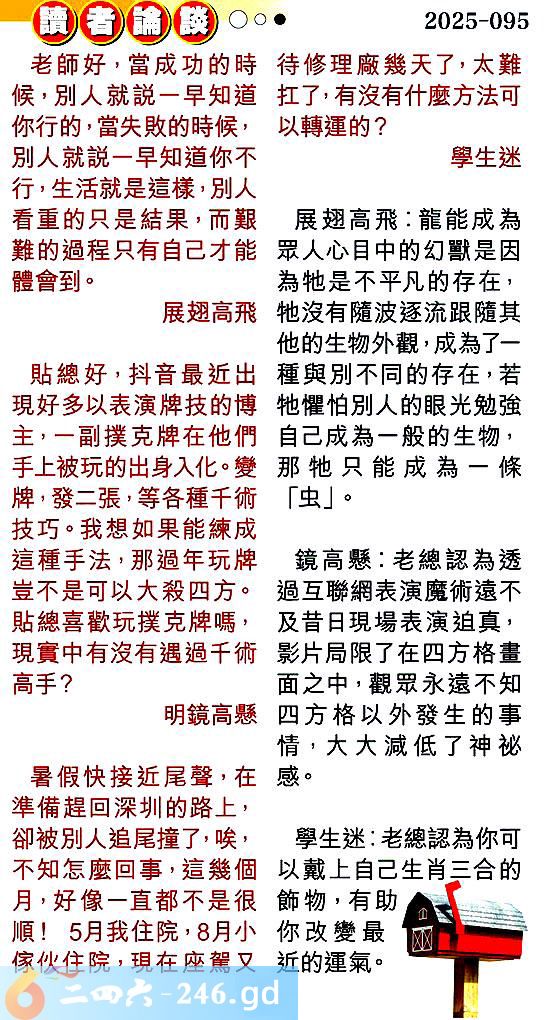 095期:彩民推荐〖貼信讀者論壇〗