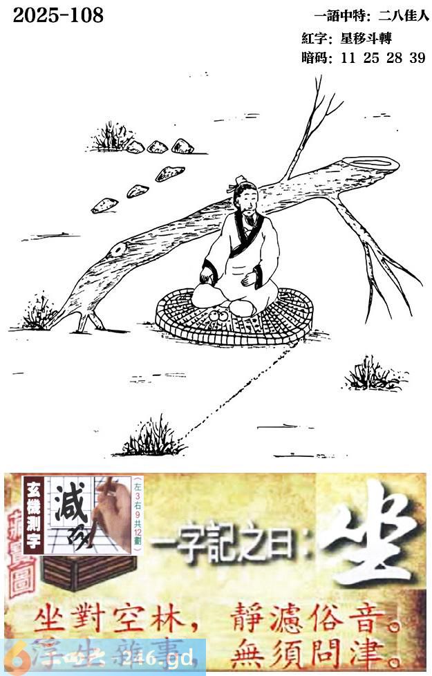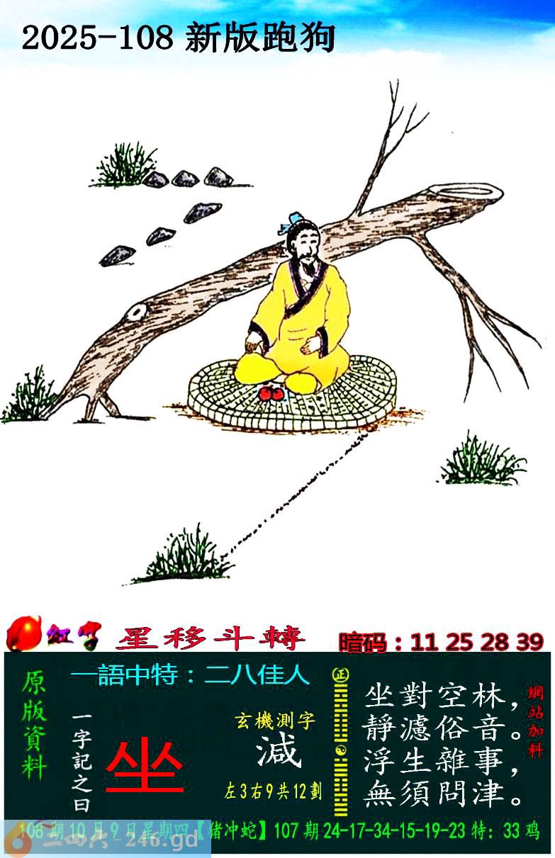 108期跑狗一字記之曰:【坐】
