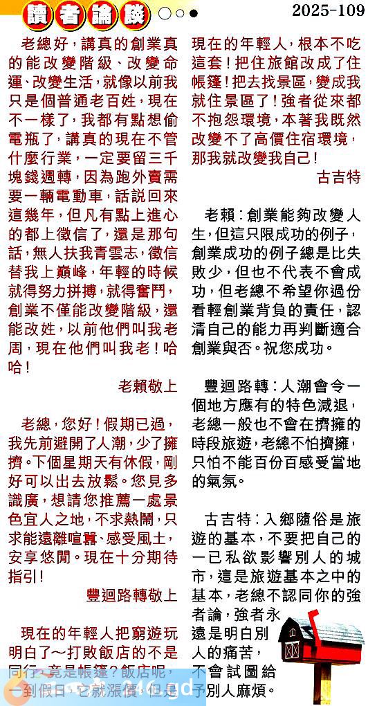 第一零九期讀者論談