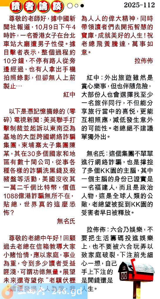 112期:彩民推荐〖貼信讀者論壇〗