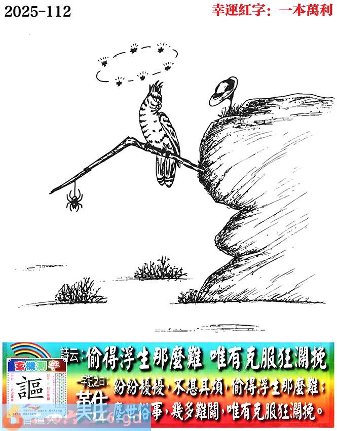 112期老版跑狗一字記之曰:【難】 詩雲:偷得浮生那麼難,唯有克服狂瀾挽。