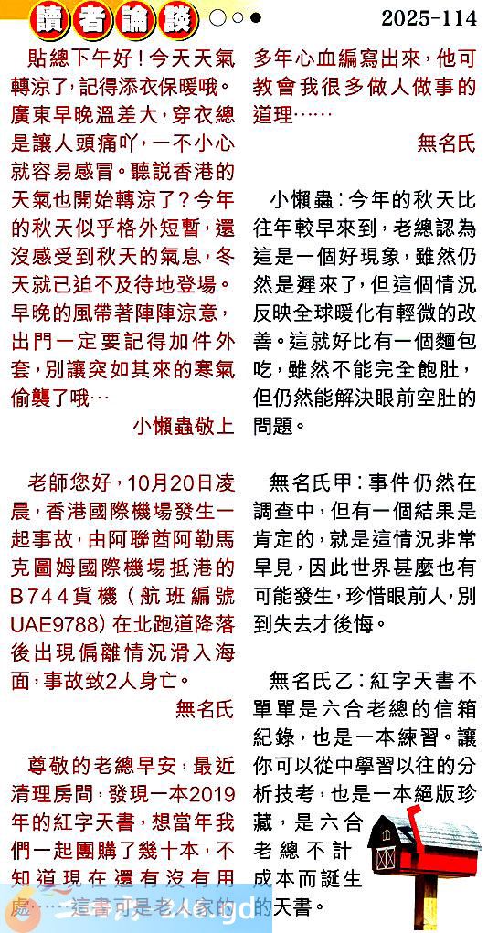 〖無名氏乙〗:紅字天書不單單是六合老總的信箱紀錄,也是一本練習。讓你可以從中學習以往的分析技考,也是一本絕版珍藏,是六合老總不計成本而誕生的天書。