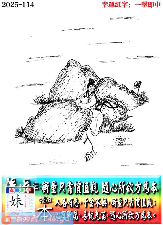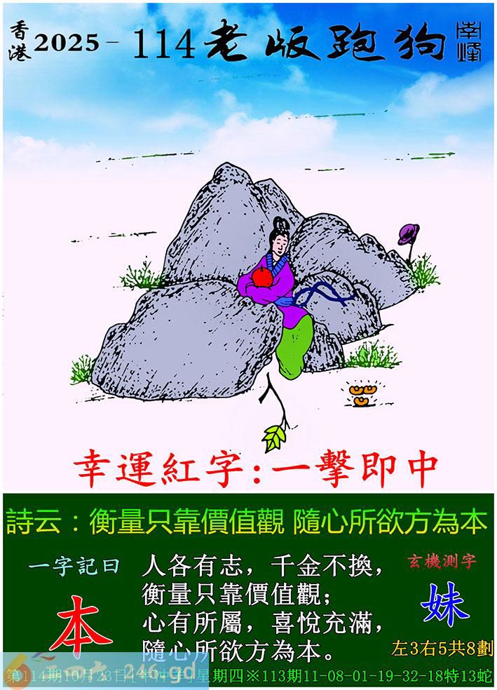 114期老版跑狗一字記之曰:【本】 詩雲:衡量只靠價值觀,隨心所欲方為本。