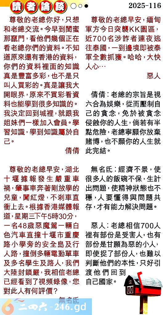 116期:彩民推荐〖貼信讀者論壇〗