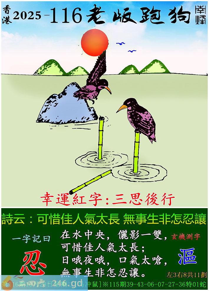 116期老版跑狗一字記之曰:【忍】 詩雲:可惜佳人氣太長,無事生非怎忍讓。