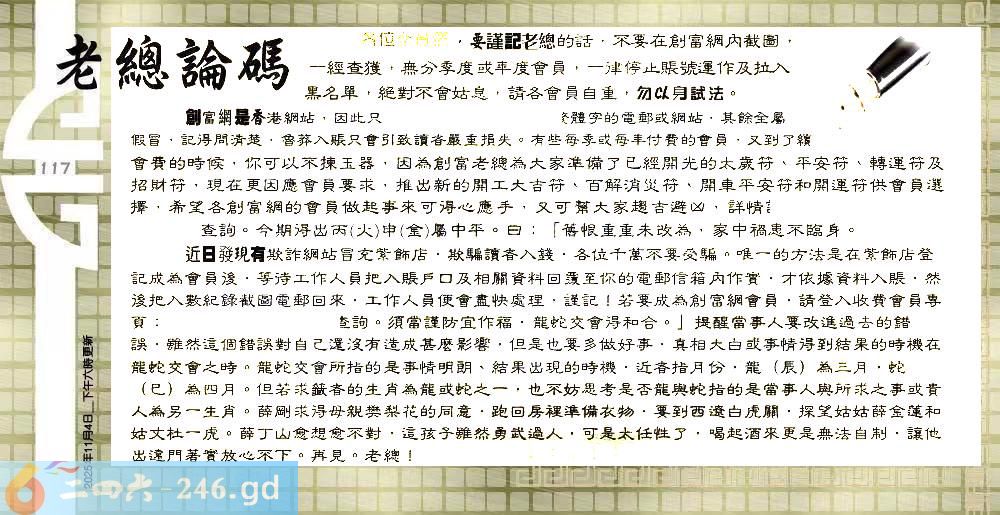 117期:六合皇金句/老总论码/萧公子/林大师/五行夺码/老总信箱截图