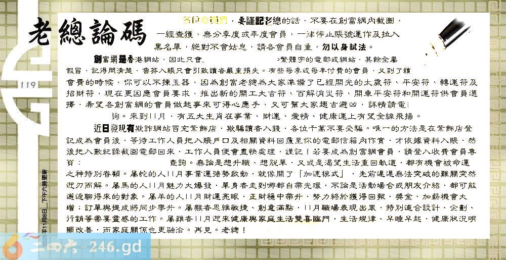 119期:六合皇金句/老总论码/萧公子/林大师/五行夺码/老总信箱截图