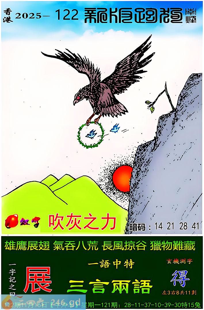 122期跑狗一字記之曰:【展】 雄鷹展翅,氣吞八荒。 長風掠谷,獵物難藏。