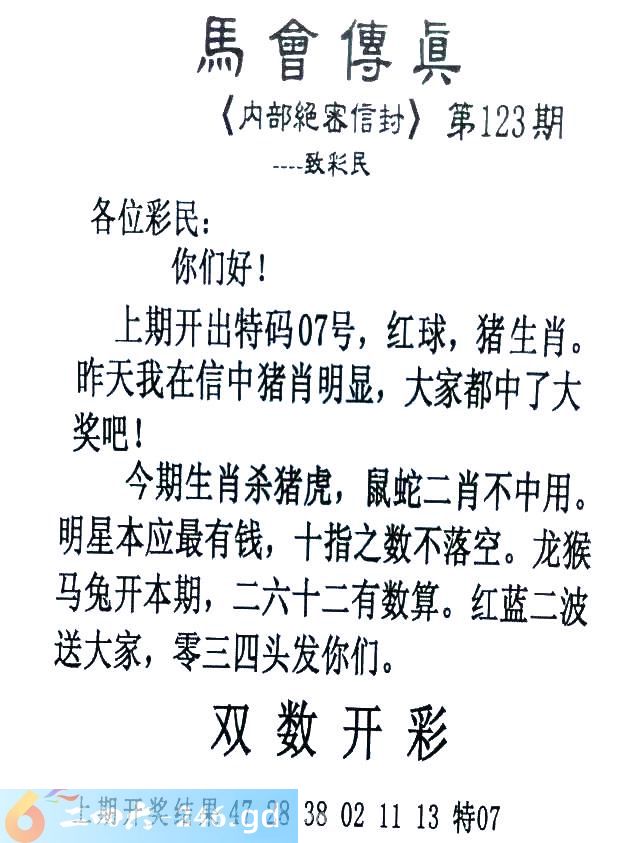 123期:首发推荐:≮馬會傳眞≯→(香港正版)