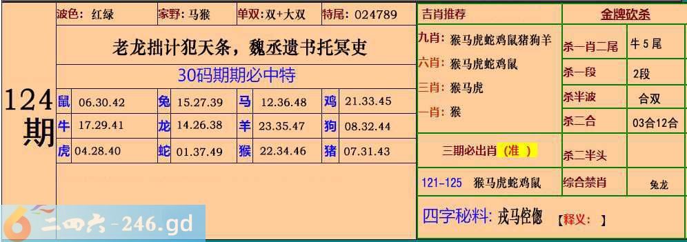 124期:30码期期必中特