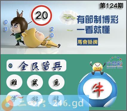 124期正版彩图挂:20 爆:牛 挂牌成语:全民皆兵 挂牌出肖:鸡鼠兔牛猴龙