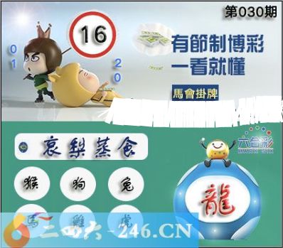 2025年030期正版彩图挂:16 爆:龙 挂牌成语:哀梨蒸食 挂牌出肖:猴狗兔马鸡虎