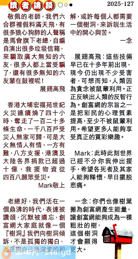 〖展翅高飛〗:這些技倆早已在十多年前出現,現今仍出現不少受害者,可想而知,人類因為貪念被鼠輩利用。正正反映出人類的反智行為。創富網的宗旨之一是把彩民的心理質素提高,至少不被鼠輩利用。希望更多人能夠享受真正的買彩樂趣。