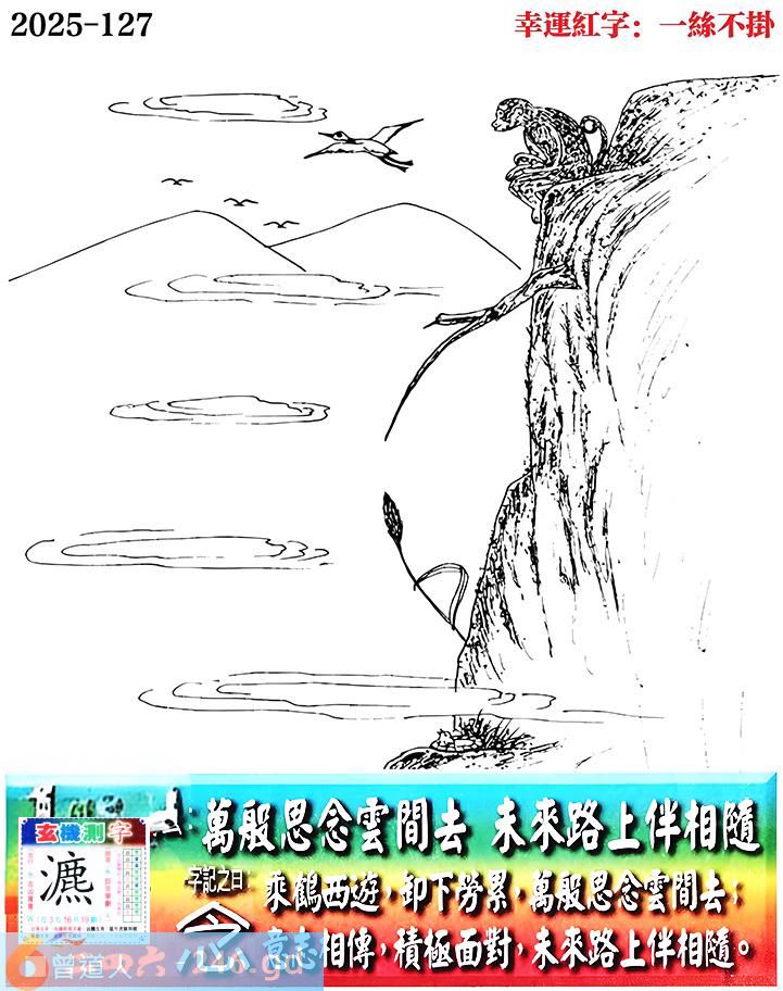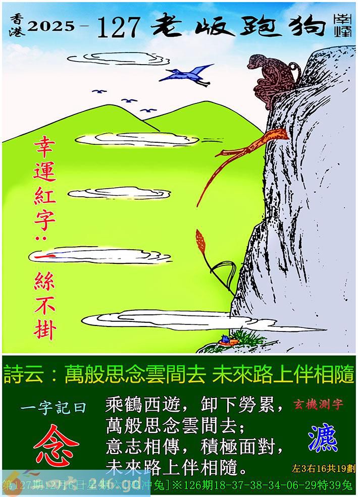 127期老版跑狗一字記之曰:【念】 詩雲:萬般思念雲間去,未來路上伴相隨。