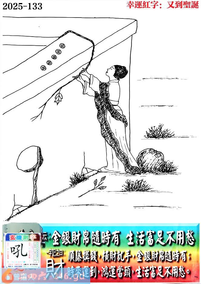 133期老版跑狗一字記之曰:【財】 詩雲:金銀財帛隨時有,生活富足不用愁。