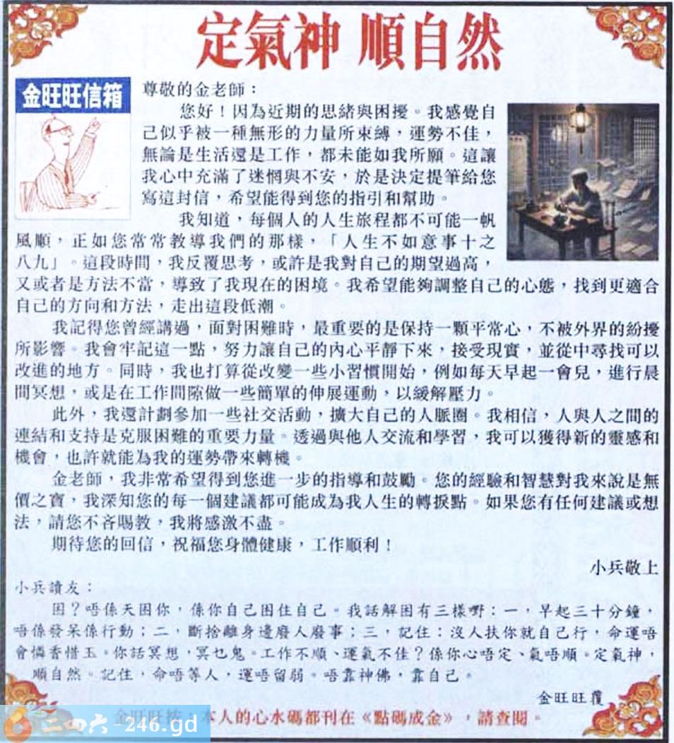 134期:金旺旺信箱彩民推荐→→《定氣神 順自然》