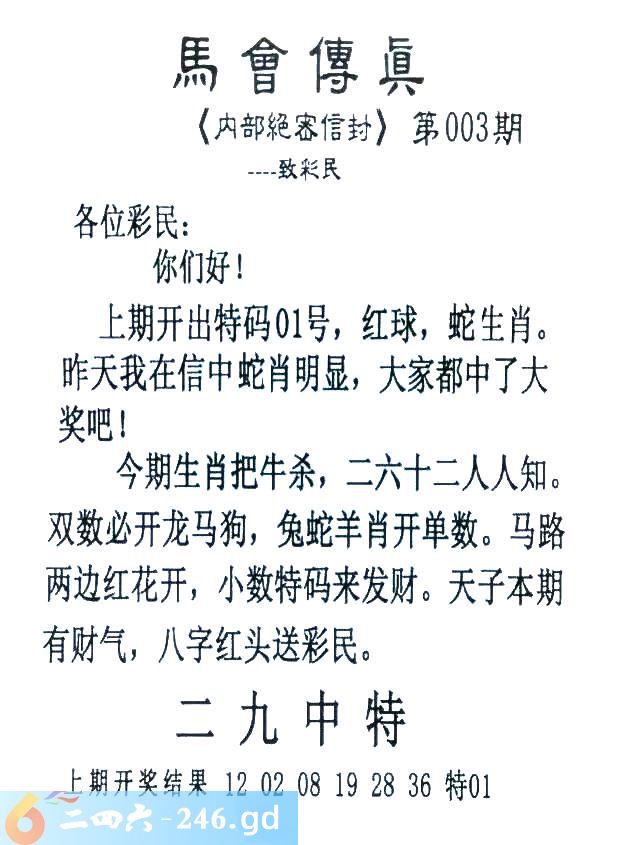 003期:首发推荐:≮馬會傳眞≯→(香港正版)