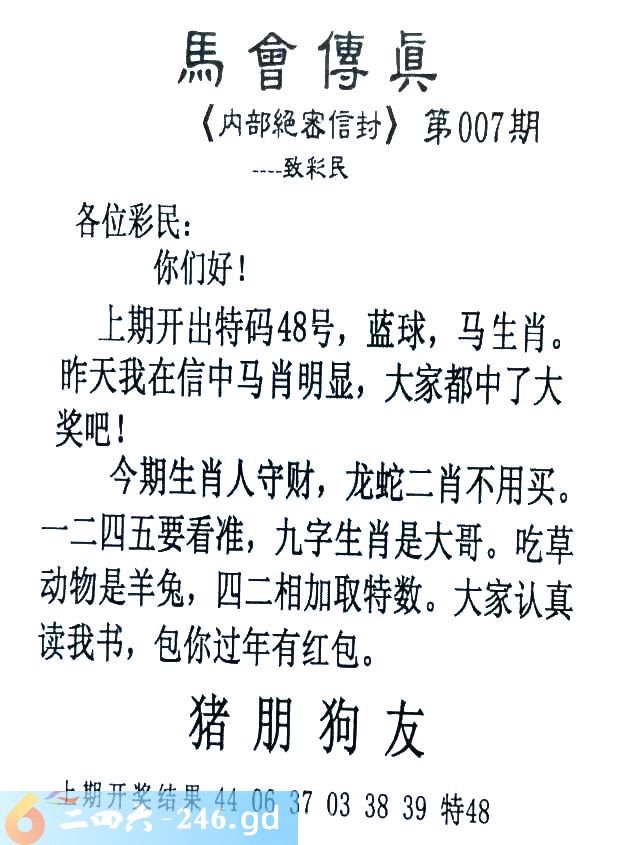 007期:首发推荐:≮馬會傳眞≯→(香港正版)