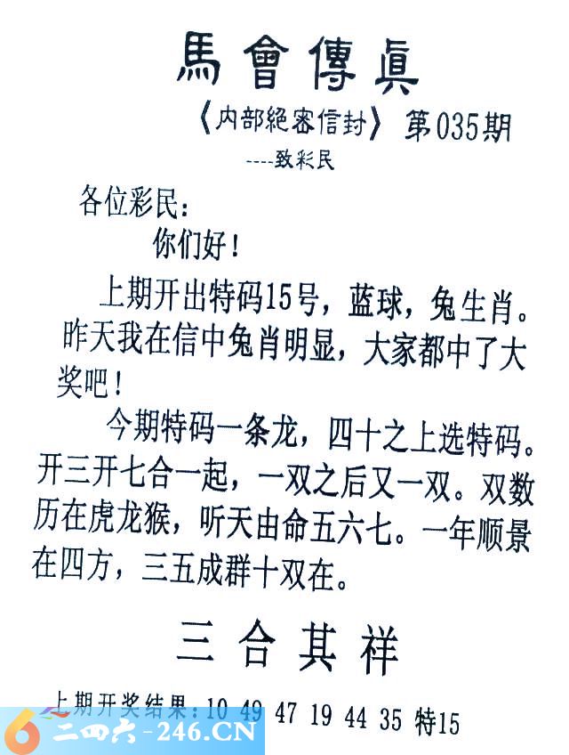 035期:首发推荐:≮馬會傳眞≯→(香港正版)