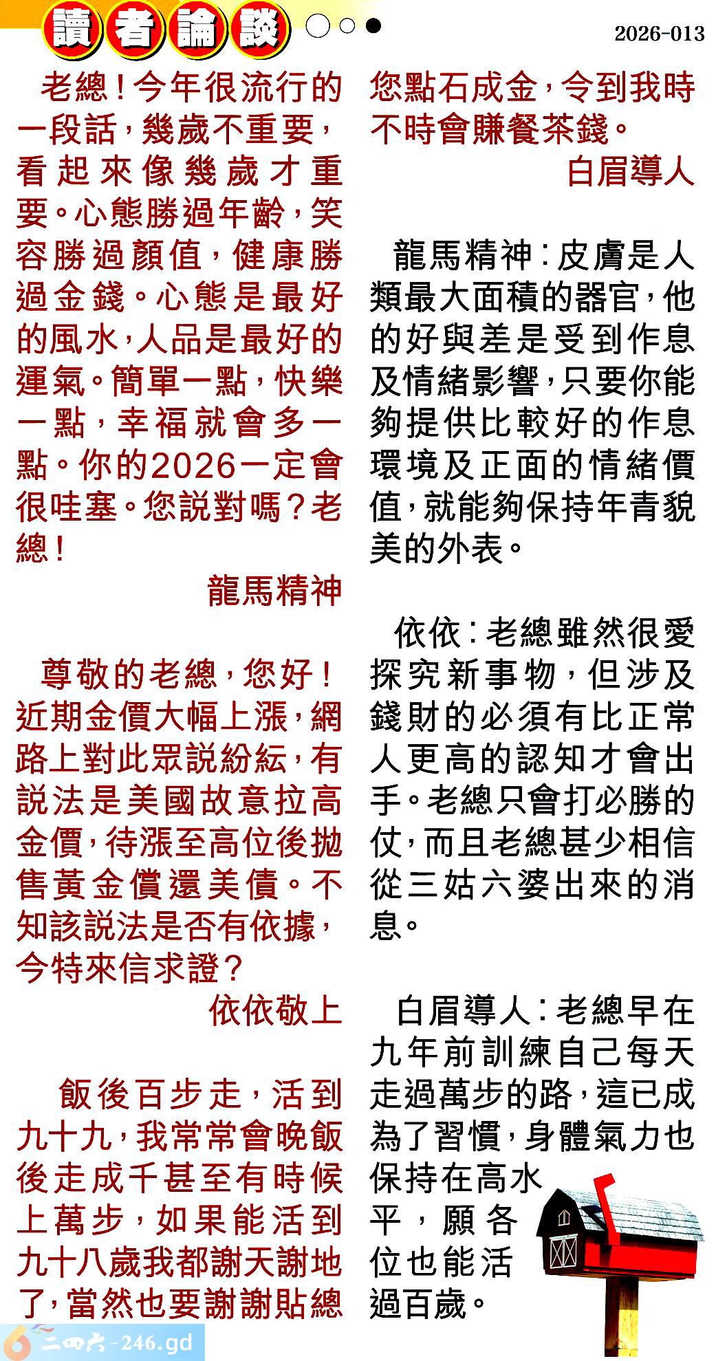 013期:彩民推荐〖貼信讀者論壇〗