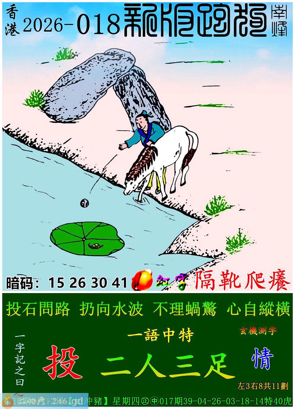 018期跑狗一字記之曰:【投】 投石問路。扔向水波。 不理蝸驚,心自縱橫。