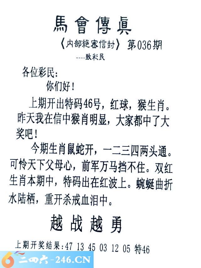 036期:首发推荐:≮馬會傳眞≯→(香港正版)
