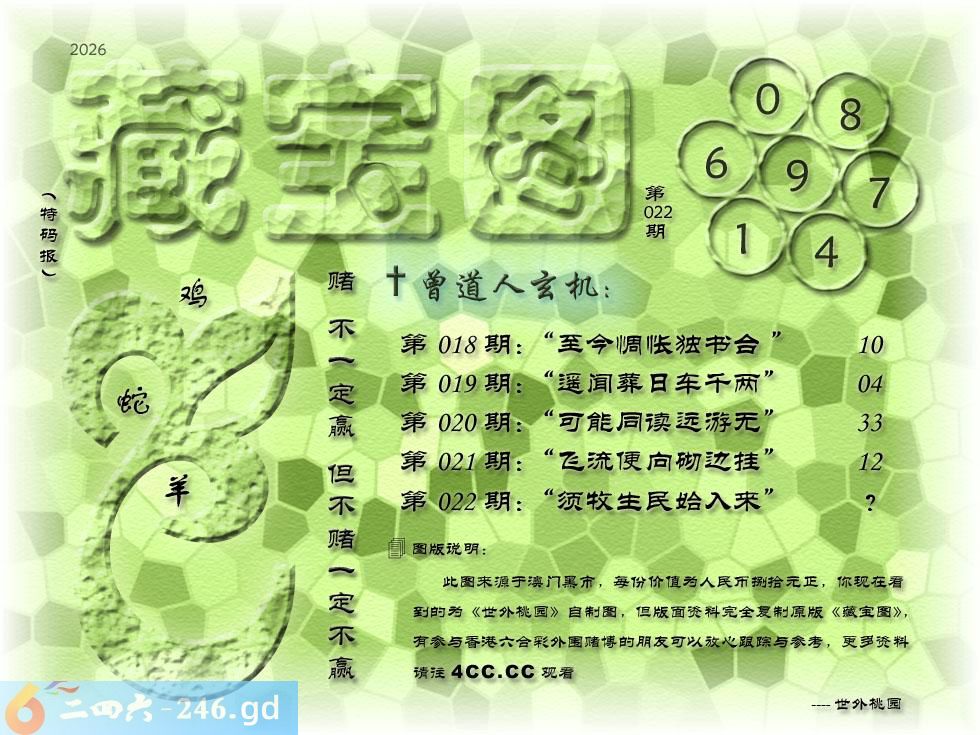 022期藏寶圖 新:须牧生民开入来 老:小君山上玉蟾生 禁:鼠 禁:5尾 玄機字:《靛》