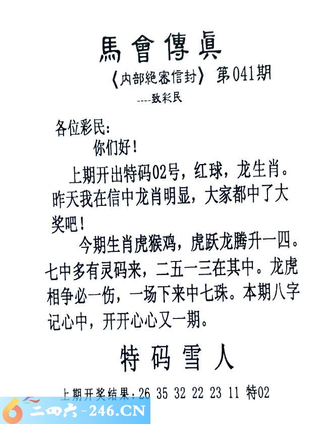 041期:首发推荐:≮馬會傳眞≯→(香港正版)