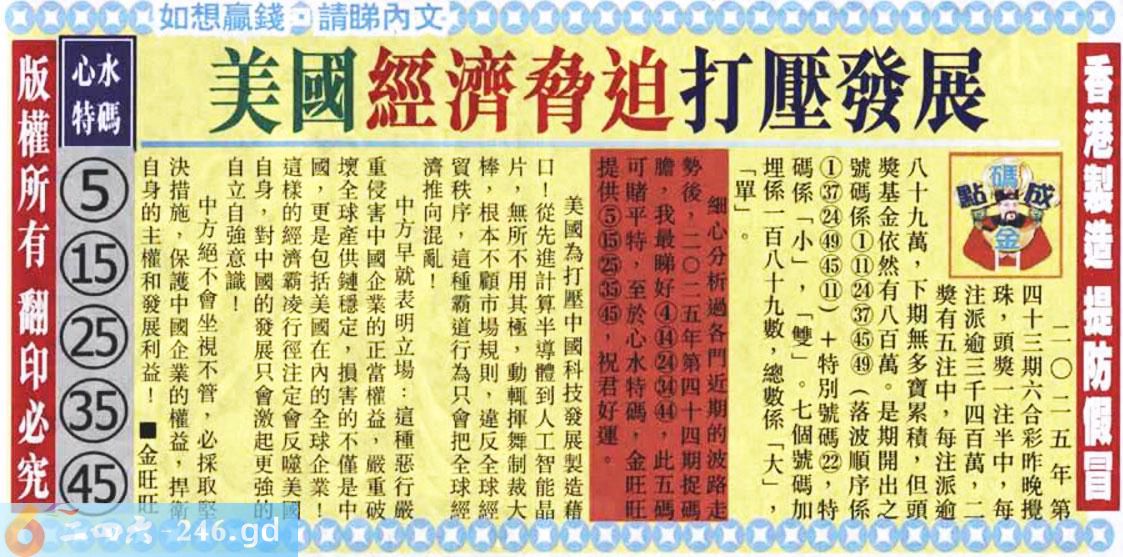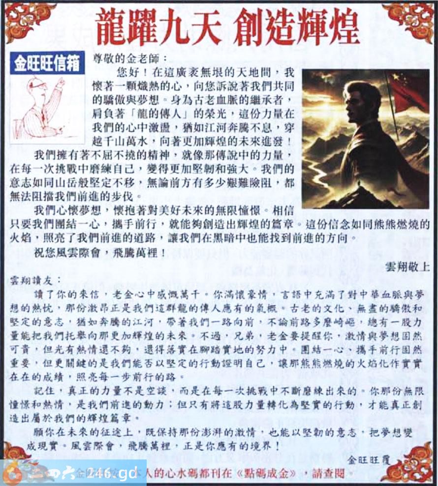 044期:金旺旺信箱彩民推荐→→《龍躍九天 創造輝煌》