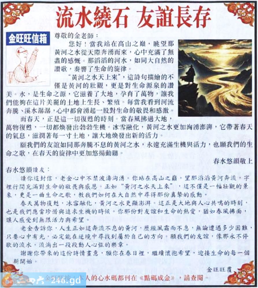 045期:金旺旺信箱彩民推荐→→《流水繞石 友誼長存》