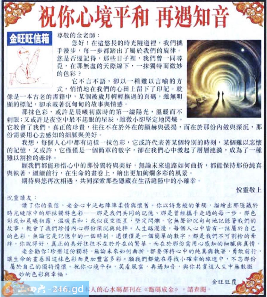 053期:金旺旺信箱彩民推荐→→《祝你心境平和 再遇知音》