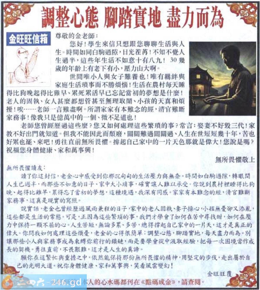057期:金旺旺信箱彩民推荐→→《調整心態 腳踏實地 盡力而為》