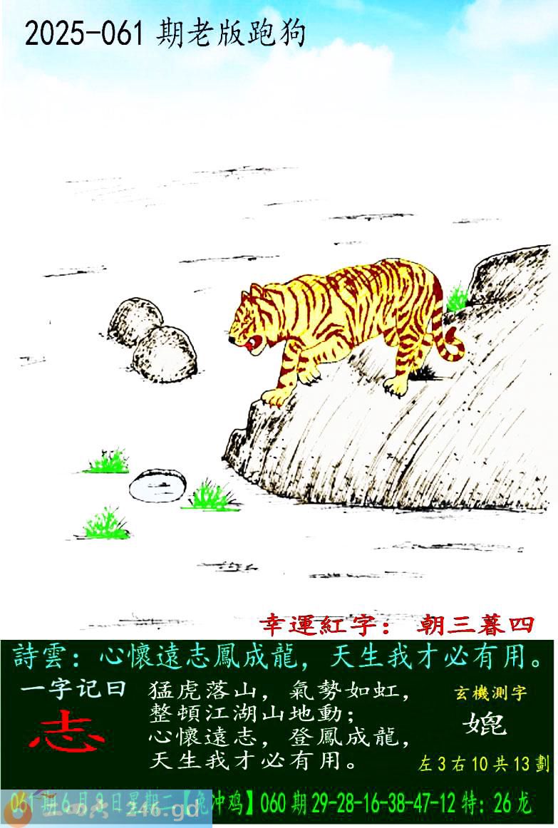 061期老版跑狗一字記之曰:【志】 詩雲:心懷遠志鳳成龍,天生我才必有用。