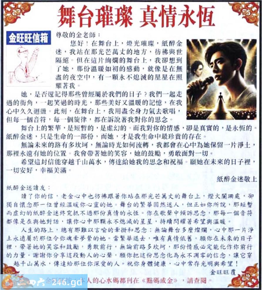 061期:金旺旺信箱彩民推荐→→《舞台璀璨 真情永恆》