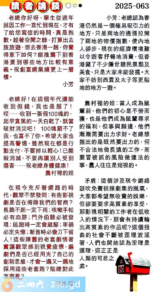 〖小芳〗:老總認為香港仍然是一個極具吸引力的地方,只是兩地的通漲拉開了兩地的物價指數,使內地人卻步,現在的經濟環境難以令遊客抒暢地消费,但香港藏了不少隱世親民景點及美食,只是大家未能發掘大家不妨到西貢及太子等更貼地的地方一遊。