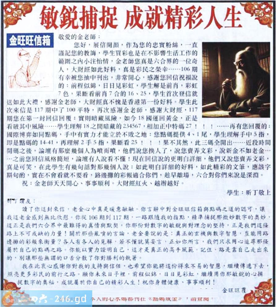 063期:金旺旺信箱彩民推荐→→《敏锐捕捉 成就精彩人生》