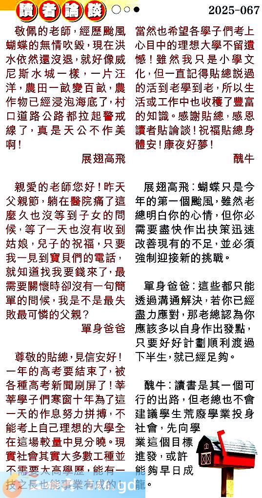 第零六七期讀者論談