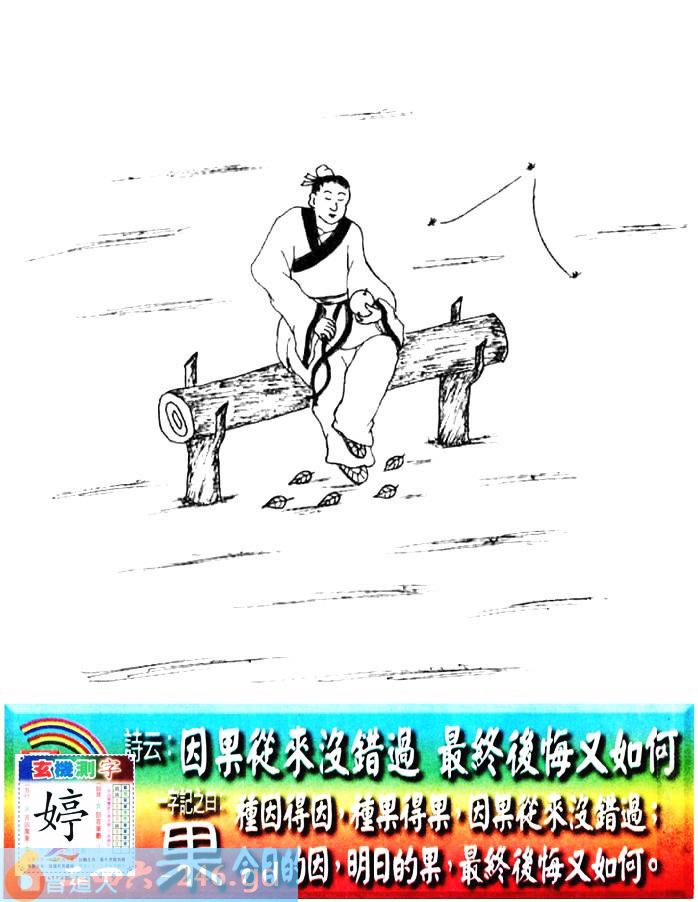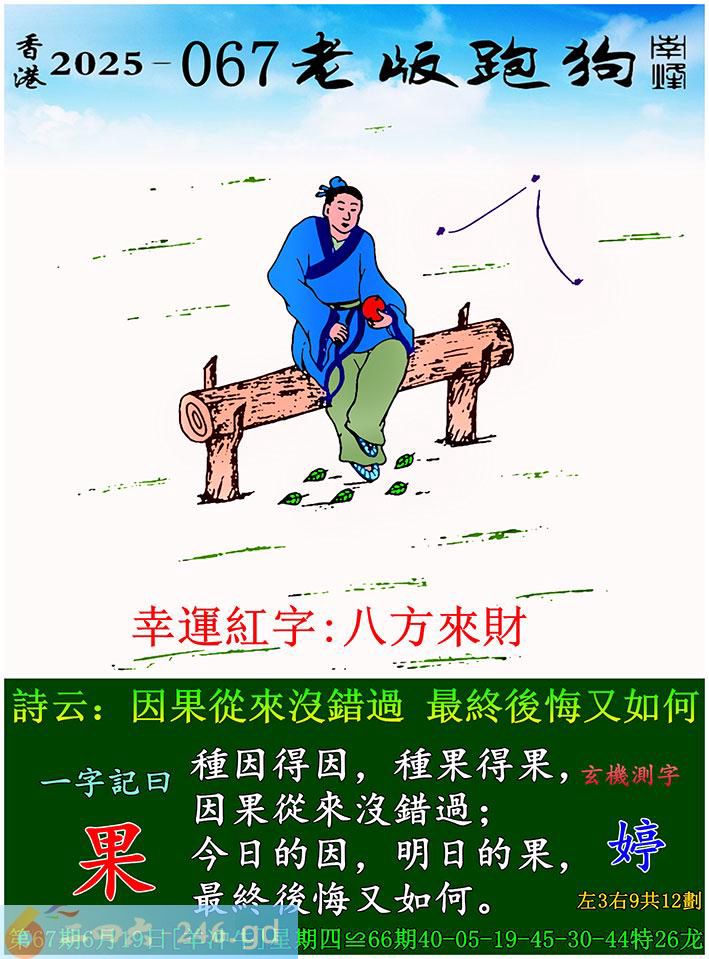 067期老版跑狗一字記之曰:【果】 詩雲:因果從來沒錯過,最終後悔又如何。